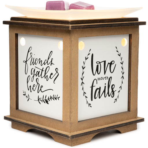 The Friends Gather Here Warmer combines a classic design with the messages Friends Gather Here and Love Never Fails to create a sentimental decor i...