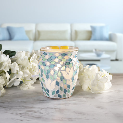 Add a little color to your life with this beautiful blue mosaic glass warmer. The unique glass pieces reflect the light and create a gentle glow to...