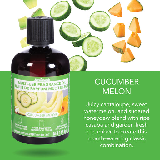 Enjoy the fragrance of Cucumber Melon with Multi Use Fragrance Oil. Juicy cantaloupe, sweet watermelon, and sugared honeydew blend with ripe casaba...