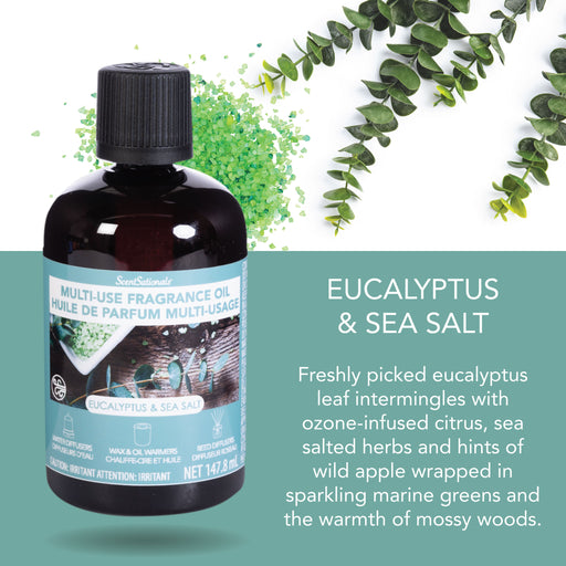 Enjoy the fragrance of Eucalyptus & Sea Salt with Multi Use Fragrance Oil. Freshly picked eucalyptus leaf intermingles with ozone-infused citru...