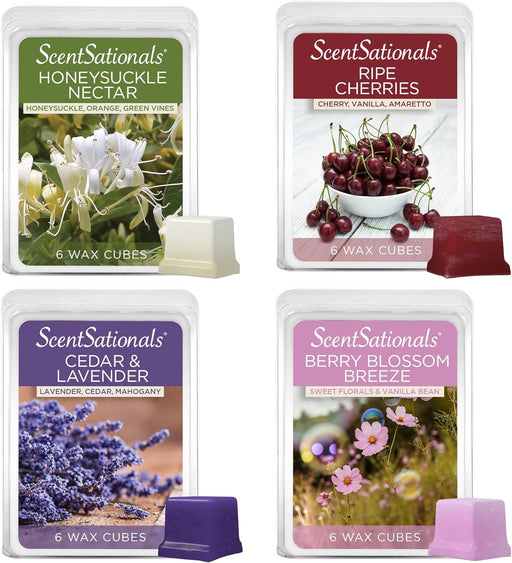 Curated 4-Pack of Scented Wax Melts – This set includes four distinct fragrances: Cedar & Lavender, Honeysuckle Nectar, Berry Blossom Breeze, ...