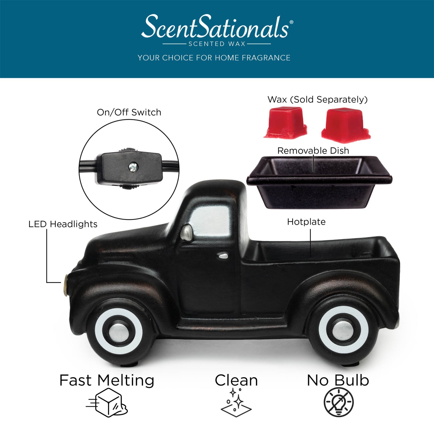 Our Truck Collection of wax warmers features a variety of colors that will satisfy any auto lover. This wax warmer is perfect for adding warmth and fragrance to your space and accent your home to create a cozy atmosphere. Sit back, relax, and enjoy. Wax sold separately.
